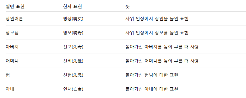 빙모와 유사한 경조사 표현도 함께 알아두면 도움이 됩니다. 아래는 가족 관계별 격식 있는 호칭 예시입니다.