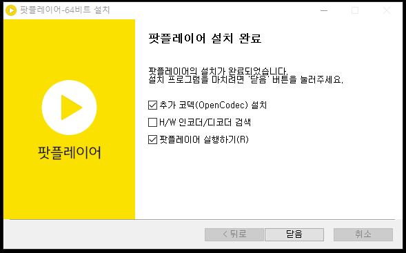 설치가 완료되면 바탕화면에 다음팟플레이어 아이콘이 생성됩니다. 아이콘을 더블 클릭하여 프로그램을 실행하고, 초기 설정 마법사에서 영상 품질, 자막 설정 등 기본 설정을 선택하면 바로 사용이 가능합니다.