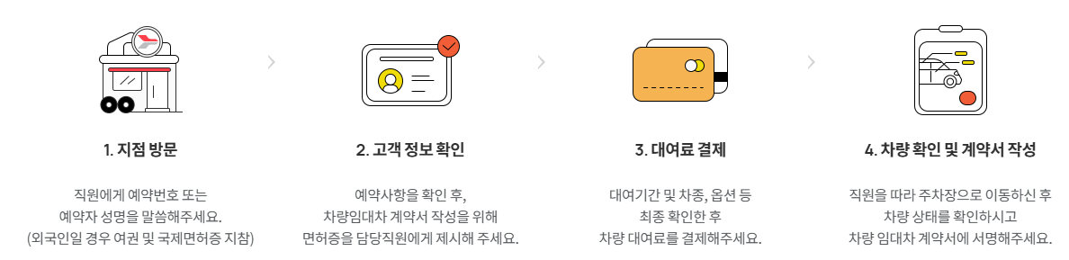 개인 고객: 운전면허증(1종 또는 2종 보통), 신분증(주민등록증 또는 여권). 법인 고객: 사업자등록증, 법인 인감증명서, 운전자의 면허증. 해당 서류를 준비하지 않을 경우 대여가 제한될 수 있으니 꼭 확인하세요.