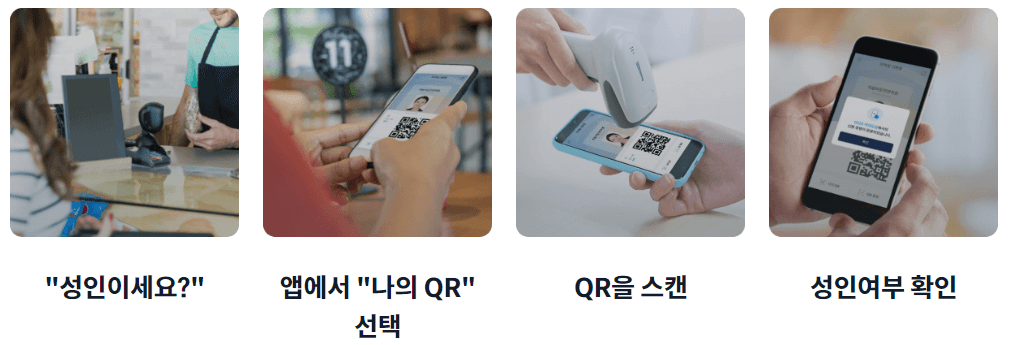 1. 편의점, 술집 : 술집이나 편의점 방문 시 성인 확인을 위한 신분증 제시를 대신할 수 있습니다. 나의 QR> 스캔> 성인여부 확인