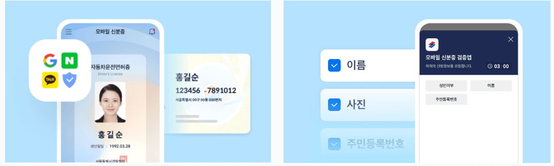 모바일 신분증은 현행 신분증과 동일한 효력이 있습니다. 동적 이미지를 확인하여 위조변조된 이미지를 구분합니다.