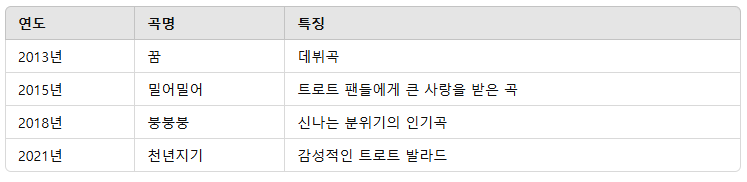 - - ‘밀어밀어’, ‘붕붕붕’, ‘천년지기’ 등 인기곡 발표