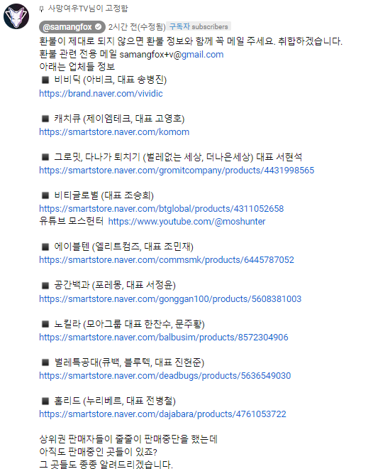 구매 연도와는 상관없이 모두 환불이 된다고 한다. 아래 유튜버 사망여우의 고정댓글입니다.