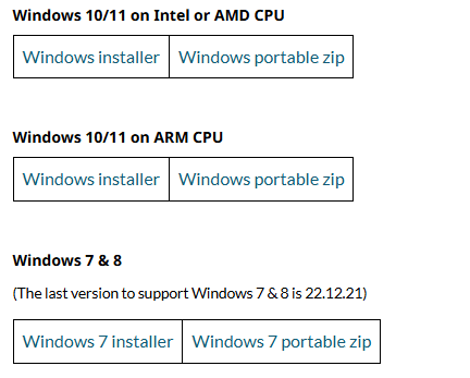 - 윈도우: Windows용 .exe 파일을 선택하여 다운로드합니다.