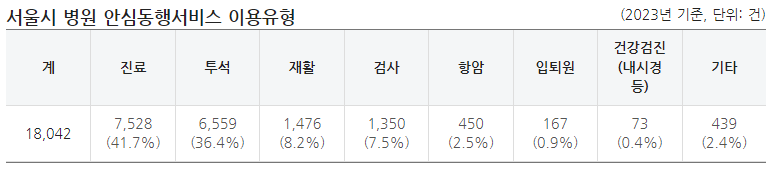 1인 가구의 의료문제를 해결하기 위해 2021년 11월에 시작된 서울시 병원 안심서비스는 작년말까지 이용 건수는 2만 9,181건입니다. 전년대비 67.5% 증가해 1만 8,042건의 서비스를 제공하고 있습니다.