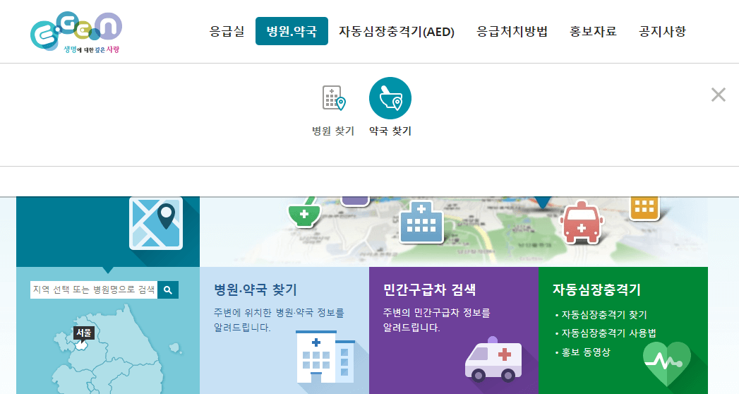 응급의료시설 약국 찾는 방법