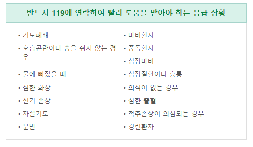 환자의 상태를 파악하고 만약 다음과 위급하다고 생각되면 119에 응급차를 요청해야 합니다.