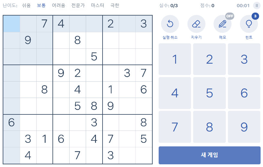 무료로 스도쿠 즐기는 방법