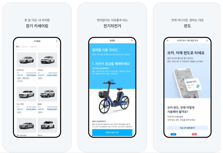 다음은 쏘카 이용방법입니다.