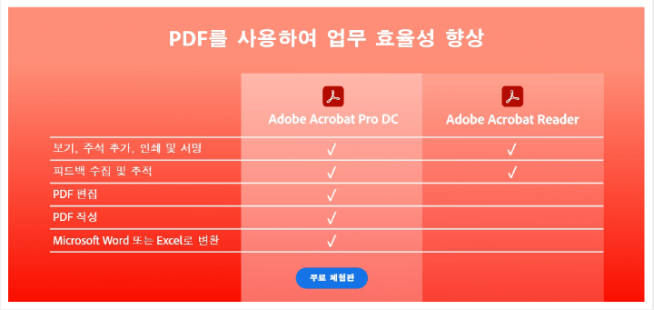 Acrobat 프로 차이점
