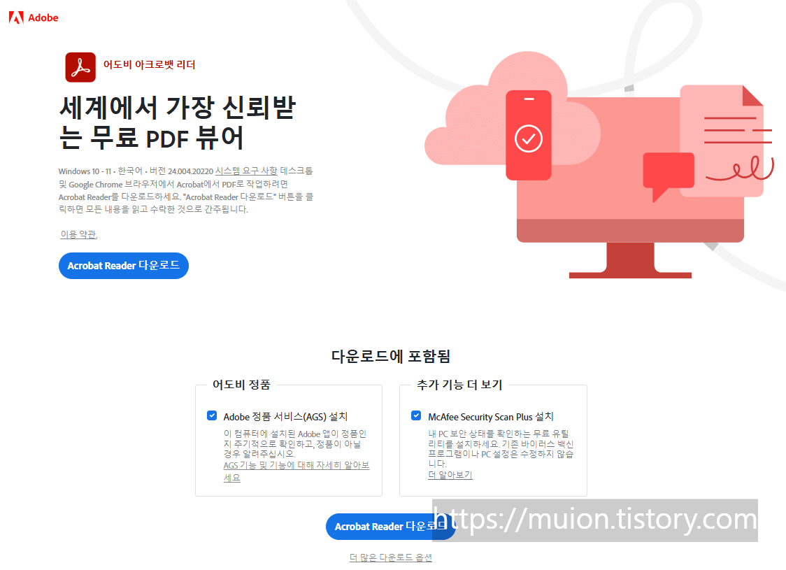 - 어도비 PDF 뷰어 다운로드 페이지: Adobe Acrobat Reader 다운로드
