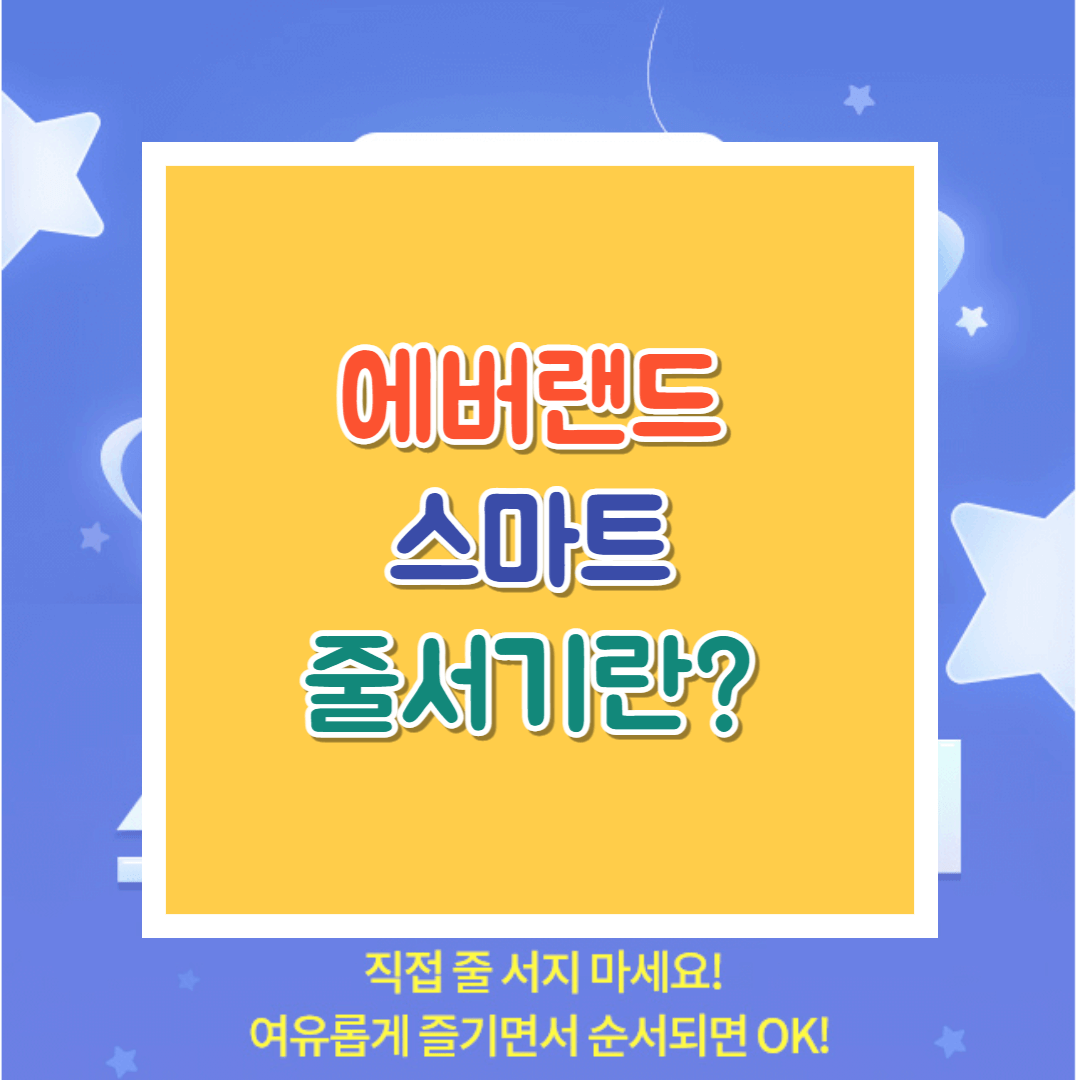 에버랜드 스마트 줄서기란 직접 줄을 서지 않고 예약으로 여유롭게 즐기면서 순서가 되면 알려주는 에버랜드만의 고객을 위한 유용한 서비스입니다. 물론 에버랜드 이용 전에 온라인 회원가입과 APP를 설치해야 가능합니다. 에버랜드 앱에서 스마트 신청 후 예약된 시간에 오면 됩니다.