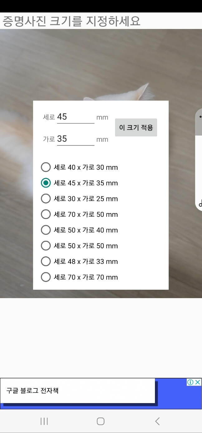 - 사진의 크기를 35mm x 45mm로 자릅니다.