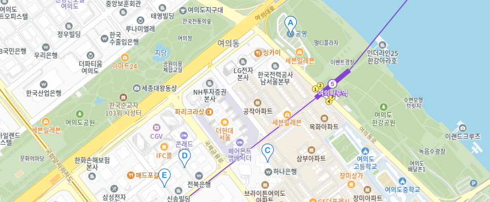 | 5,9호선 | 여의도역 | 3번 출구 | 약 10분 |