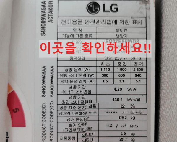 위의 두 가지로 충분히 인버터와 정속형을 구분할 수 있습니다. 그래도 확인이 안 된다면 모델명을 확인하시면 됩니다. 참고로 5등급은 정속형입니다.