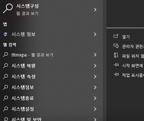 - 검색창에 "시스템 복원" 입력 후 실행