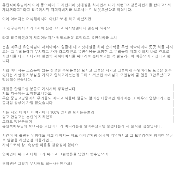 유연석 씨에게 갑질을 당했다는 누리꾼의 이야기는 다음과 같습니다.
