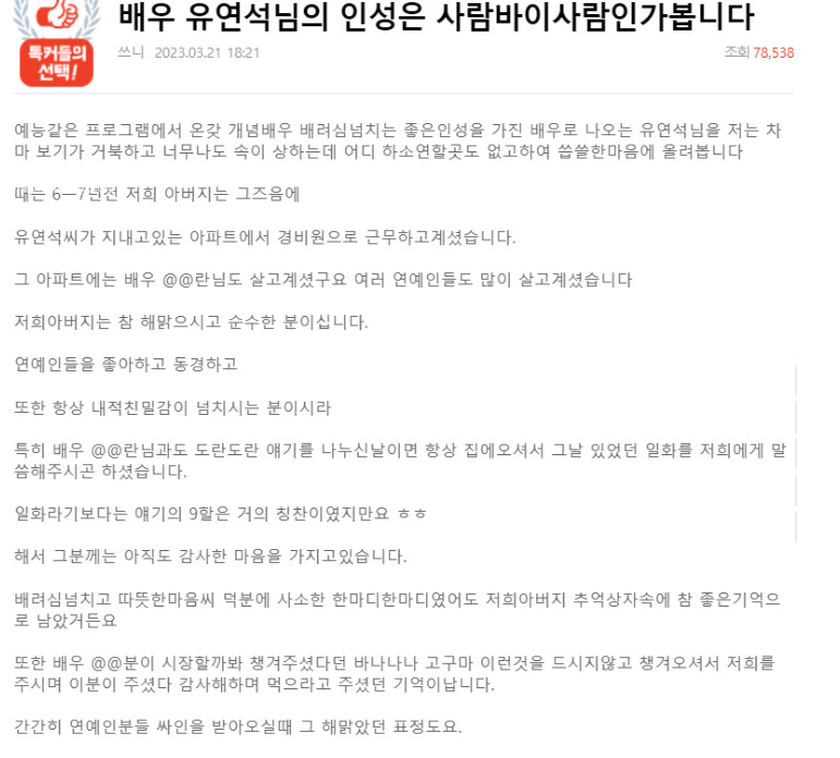 유명 스타의 허위 보도 글은 법적으로 어마어마한 파장이 있다는 걸 알면서 글을 올린 것을 보면 대단합니다. 요즘 같이 가짜 뉴스가 판을 치는 세상에 이 글이 진실이라고 믿고 싶지는 않습니다. 이미 많은 유명인들이 유명하다는 이유만으로 당하고 있기 때문입니다. 또한 누리꾼들도 중립지키고 있는 댓글이 많습니다.