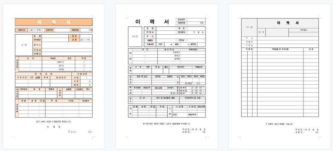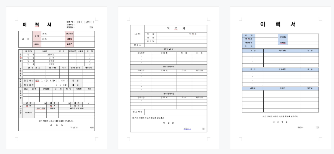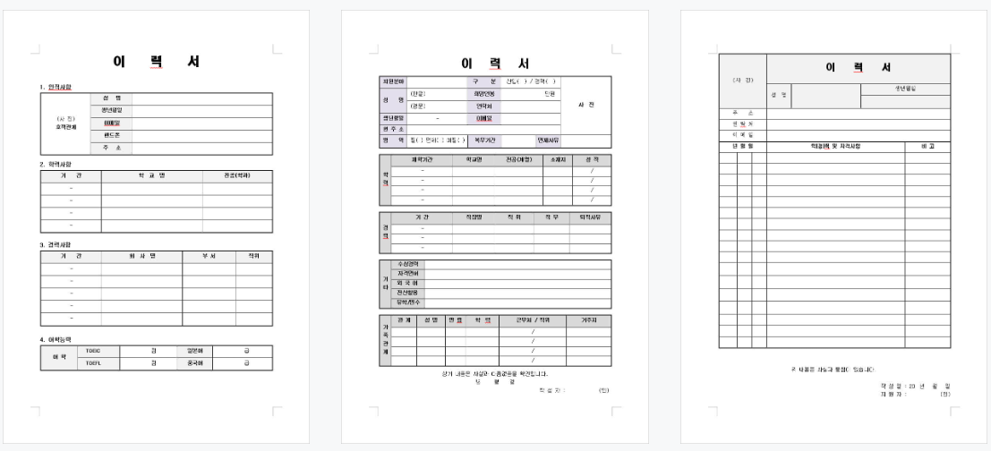 이력서 양식 무료 다운로드