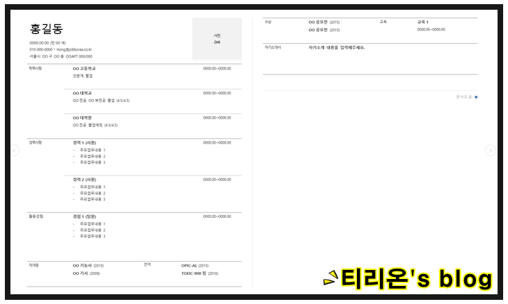 4. 네이버 블로그의 이력서 자료