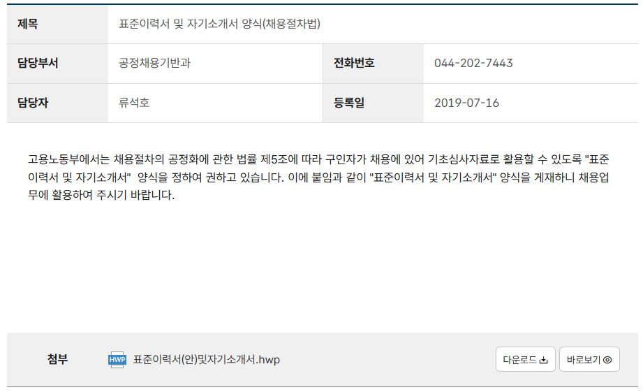 고용노동부는 정부 기관답게 신뢰할 수 있는 자료를 제공하며, 표준화된 이력서 양식을 쉽게 다운로드할 수 있도록 지원합니다.
