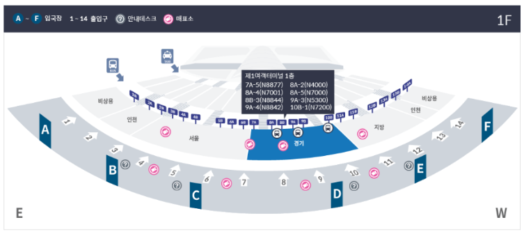 인천공항 1터미널 경기 심야버스 노선과 시간표 위치를 알려드리겠습니다. 최근 구간이 확대되어 총 8개 노선이 운행되고 있습니다. 또한 기존 노선들의 시간도 조정되었으니 끝까지 필독하여