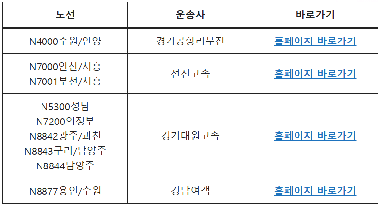 경기 방면 심야버스 노선 안내