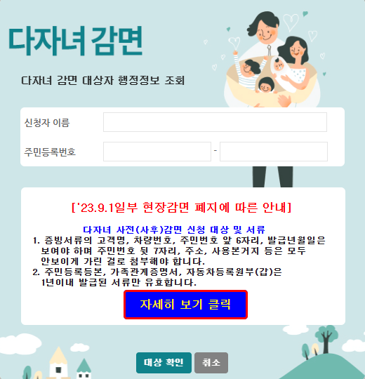다자녀 할인 등록 준비서류