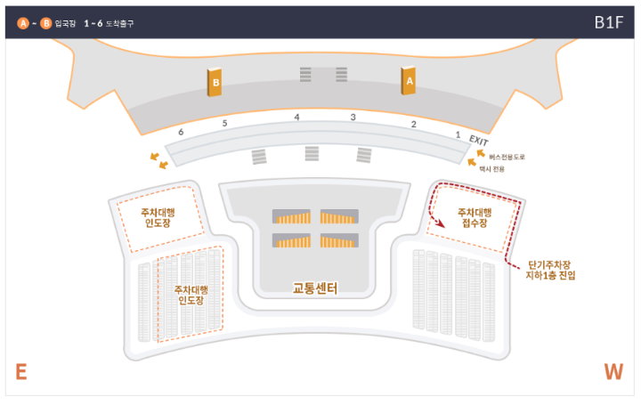 2. 공식주차대행 전수장으로 이동 : 단기주차장 지하 1층 서편 진입부에 위치한 공식주차대행 접수장으로 이동합니다.