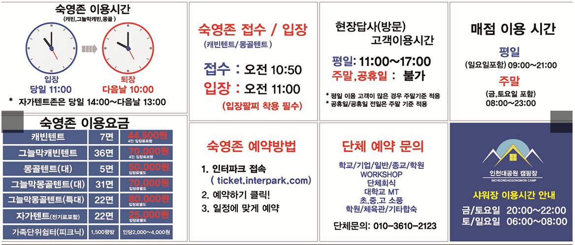 ※ 예약은 인천캠프 공식 홈페이지에서만 가능하며, 현장 접수는 불가합니다.