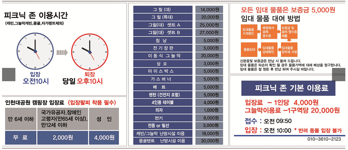 인천대공원 숙영촌 : 자가텐트부터 그늘막까지 요금·입장료 한눈에 보기 - 헬프유