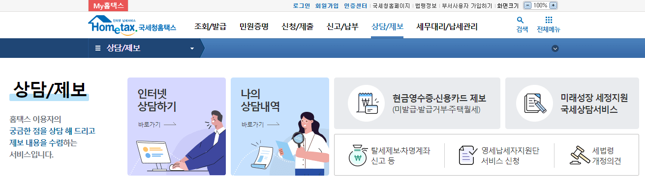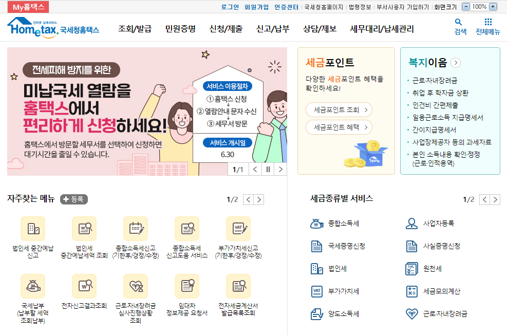 1. 홈택스에 접속합니다.