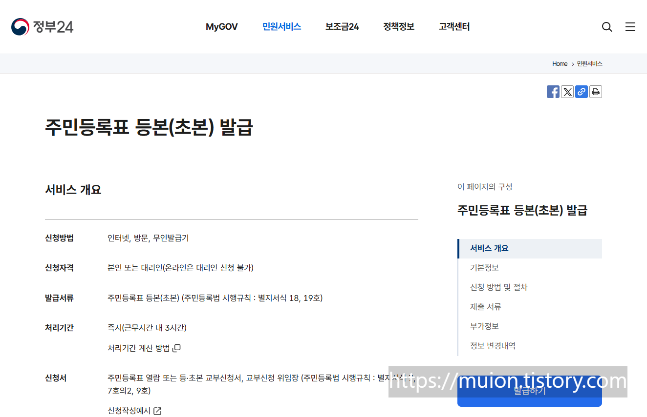 다음에서 정부 24에서 주민등록 등본과 초본 신청방법을 확인하시길 바랍니다.