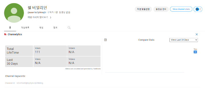 채널설정에 들어가서 채널을 꾸미시기 바랍니다. 대문은 자신의 얼굴입니다. 만약 이 상태로 지속한다면 구독자는 당신의 채널을 영원히 외면합니다.