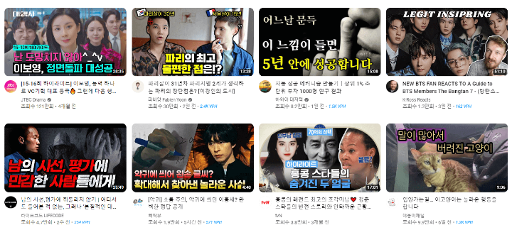 마지막으로 유튜브의 알고리즘은 아주 예리하고 정확합니다. 타깃을 잘 잡았을 때 알고리즘을 타게 만들어줍니다. 즉 다시 정리하자면 유튜브란 플랫폼에 이득이 되어야 노출시켜 줍니다. 많은 손님이 왔는데 허접하거나 검증되지 않는 영상은 절대 띄워주지 않습니다.