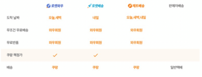 배송속도 정리 : 로켓와우 > 제트배송 = 로켓배송 > +2일 배송 = 일반배송