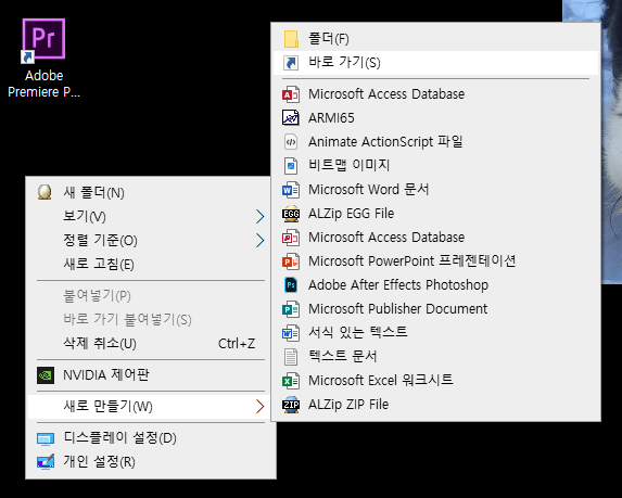 1. PC 바탕화면에 마우스 오른쪽 버튼 클릭 > 새로 만들기 > 바로가기를 선택합니다.