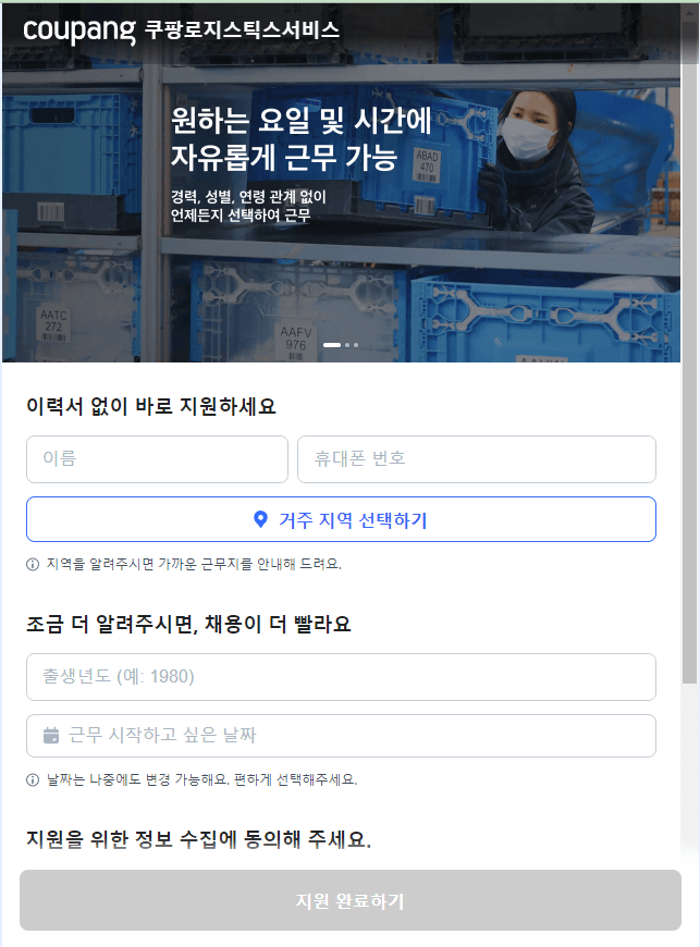 이상 쿠팡 주부 물류센터 알바 신청에 대해 알아봤습니다.