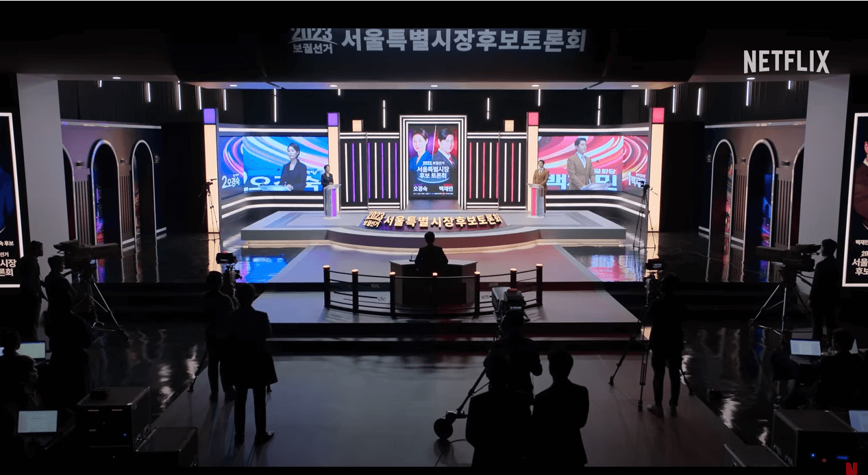 서울 시장 선거에 출마한 황도희와 오경숙과 대립하는 역할을 맡습니다. 국민 아나운서 역활로 언제나 메인 MC 간판 앵커자리를 수년간 지킨 대표 언론인입니다.