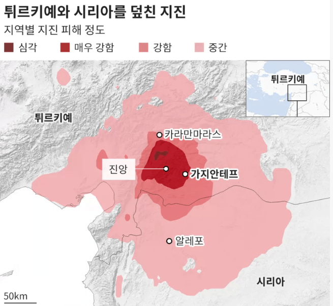 지난 6일 이른 새벽에 투르키예(터키) 남동부 가지안테프시에서 떨어진 내륙에서 규모 7.8의 엄청난 강한 지진이 발생했다. 현재까지 4,000명가량이 사망하고, 수천 명이 다친 것으로 보고된다.