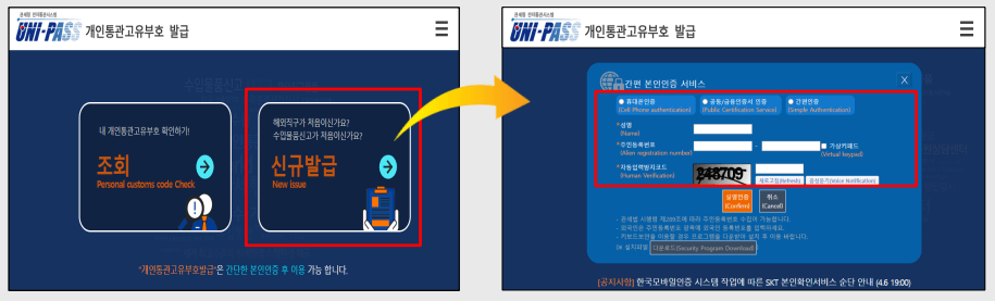 "개인통관고유부호발급"은 간단한 본인인증 후 이용 가능 합니다.
