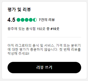 화담숲 근처 맛집추천으로 첫 번째는 라그스타입니다.