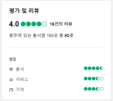 ★ 위치: 광주 지역 내에서 쉽게 접근할 수 있는 위치에 있으며, 가족 단위 손님들에게도 적합한 분위기를 갖추고 있습니다.