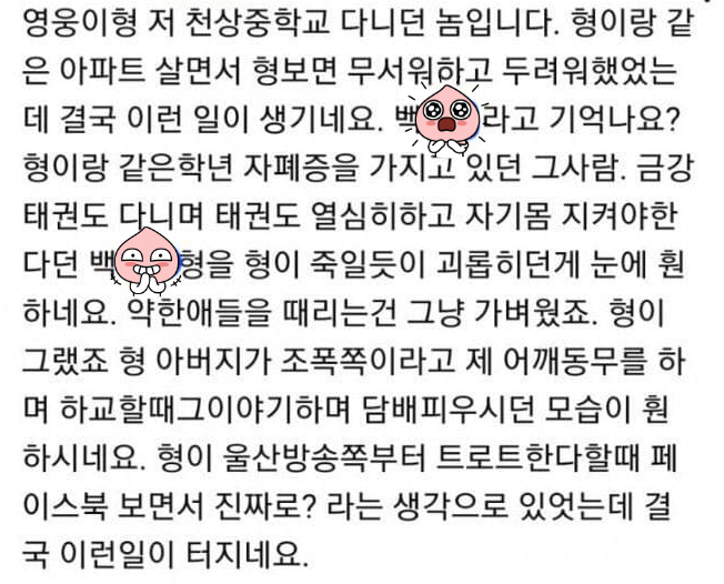 그것은 약한 학생들을 때리는 가벼운 일이었다"라고 올렸다.