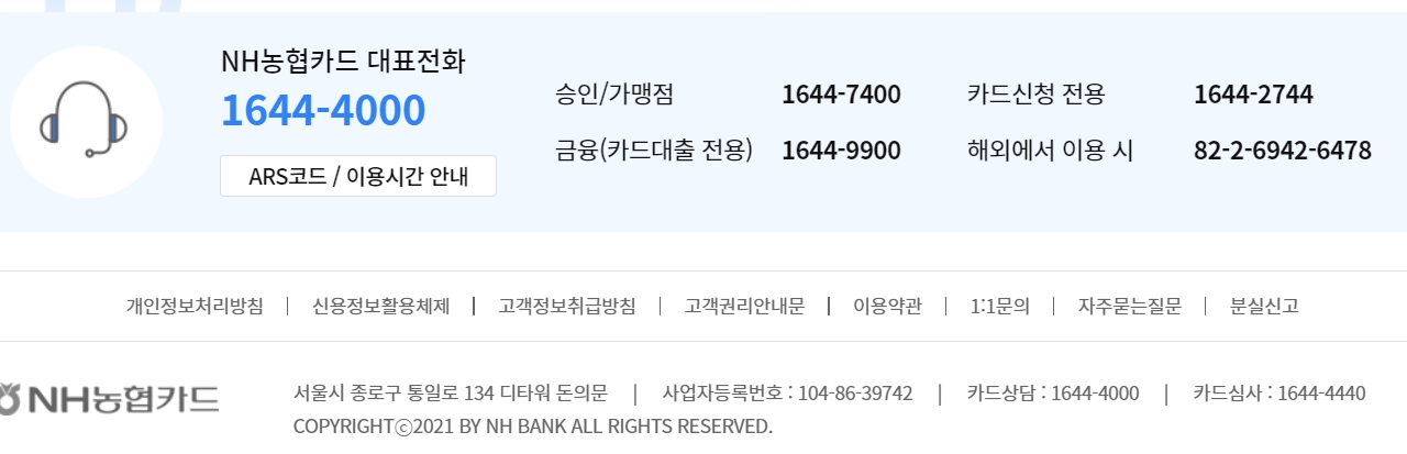 NH농협카드 공식 고객센터 전화번호 구분