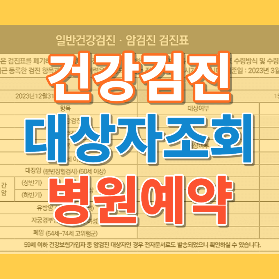 2024년 건강검진 대상자 조회 및 검진병원 조회방법을 알려드리겠습니다. 최근 검진을 하지 않을 경우 일부 불이익이 발생하므로 건강검진을 빨리 받아 조기발견하시길 바랍니다. 오늘은 건강검진 대상자 조회와 건강검진 병원예약 및 연장과 국가검진 본인부담금에 대해 정리해 보겠습니다.