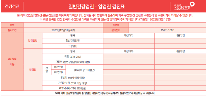 ※ 검진표를 분실하거나 수령치 못한 경우 1577-1000번이나 가까운 지사에 신청하면 검진대상자 확인서를 발급합니다.