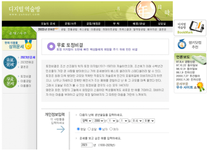 디지털 역술방 홈페이지 자세히 보니 우측에 언론 보도가 있었군요.