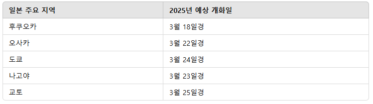 2025년 일본 벚꽃 개화 예상일