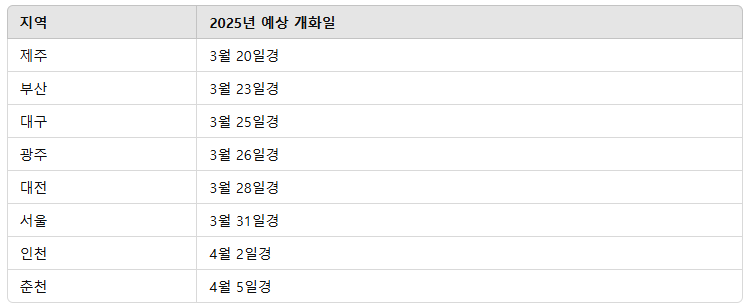 2025년 벚꽃 개화시기